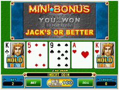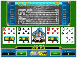 1.本游戏为5支牌扑克游戏,牌中有一支杰克牌可取代任一其他牌形。